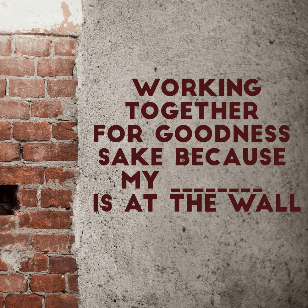 Working Together For Goodness Sake Because My ________ Is At The Wall